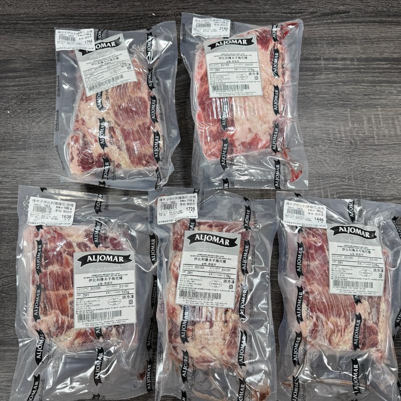 ALJOMAR 伊比利梅花豬是來自西班牙的頂級伊比利豬肉品,來自肩胛部位的上半部,具有均勻分布的油花,口感軟嫩多汁。這種豬肉因其獨特風味,常被用於燒烤、煎豬排或火鍋。