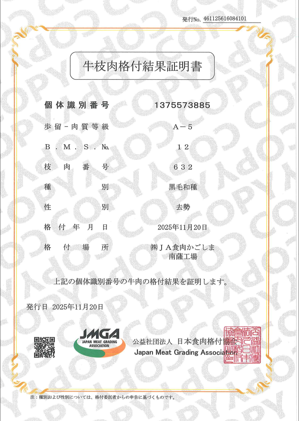 這頭牛大理石油花分數BMS12。油花細緻。A5是8~12。12上去沒了。照片中有證書對照。
